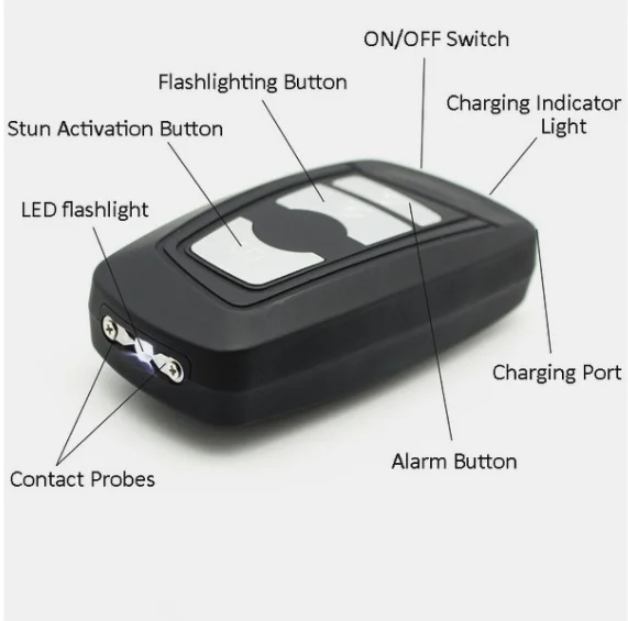 Strong Electric Shock — Enough to disable and disorient an attacker Blinding LED Flashlight — Light your way and stun potential threats Ear-Piercing Alarm — Draw attention and send danger running Compact & Stylish Keychain Design — Carry it anywhere without suspicion